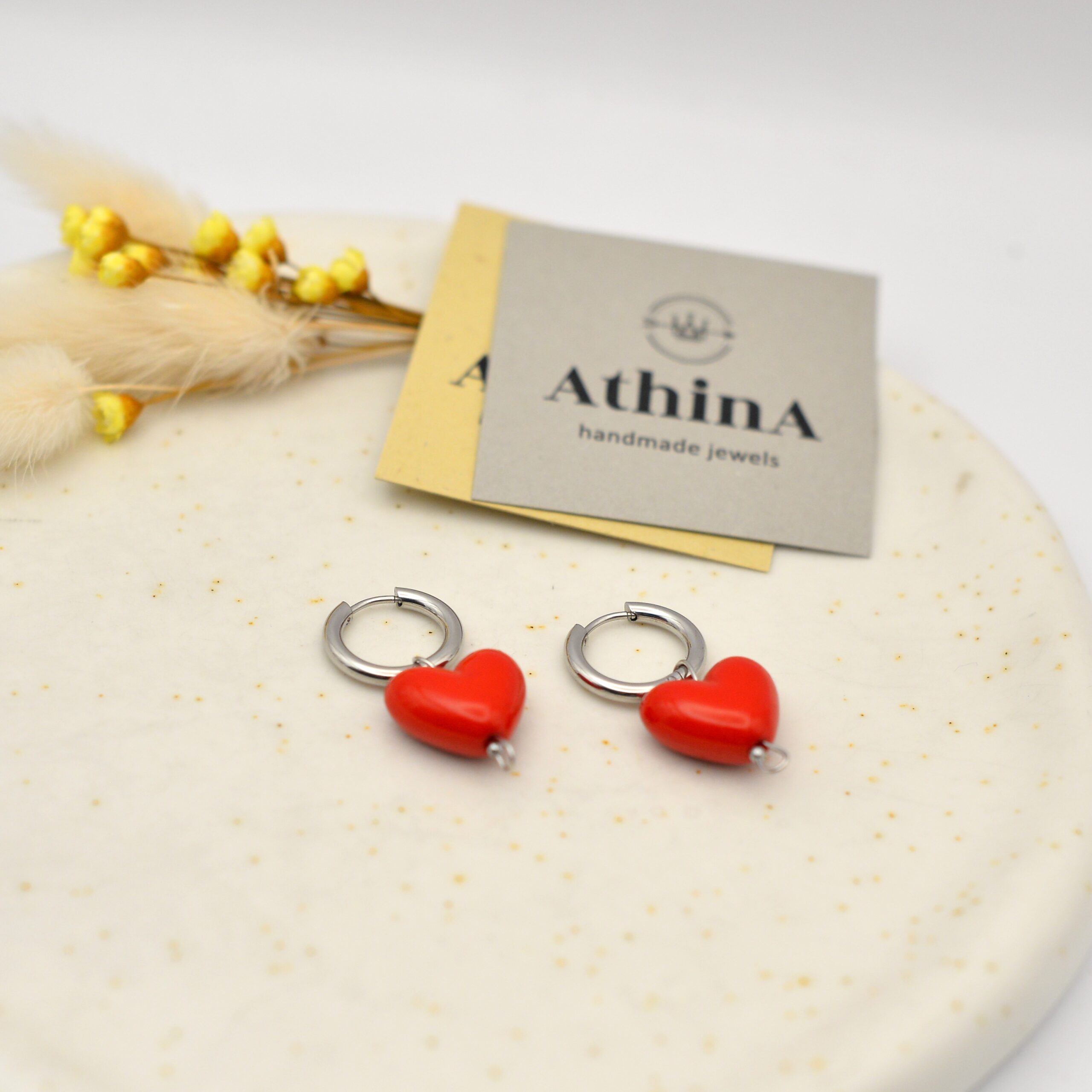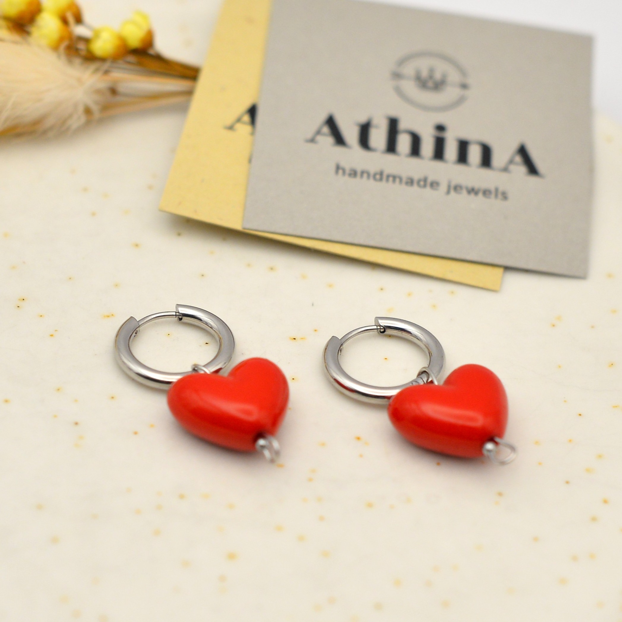 Σκουλαρίκια από ατσάλινο κρίκο και καρδιά