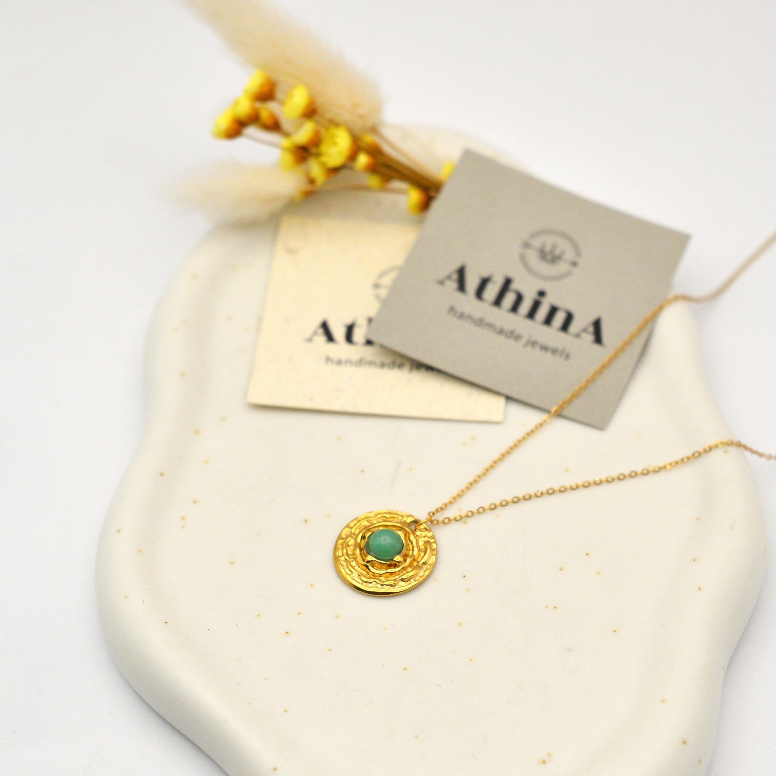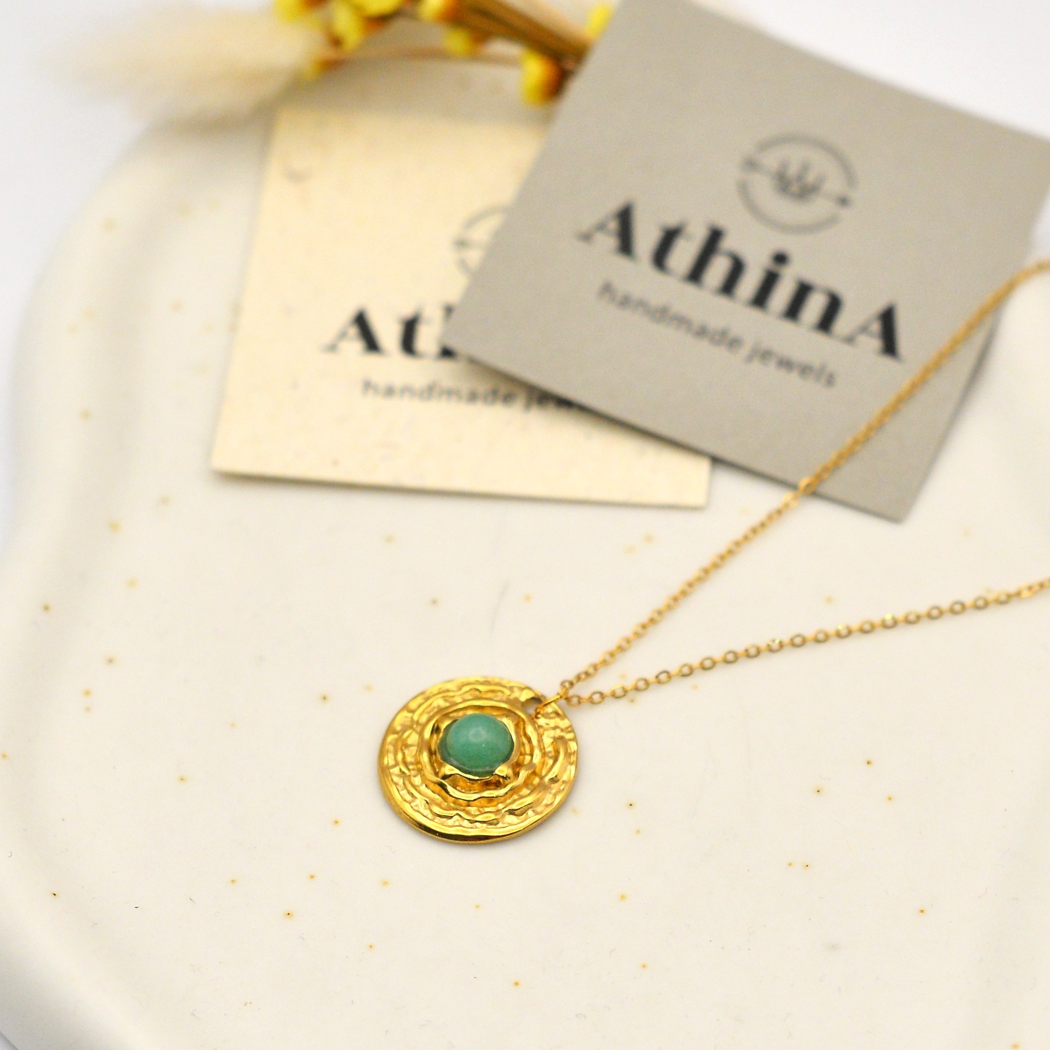 Κολιέ από ατσάλινη αλυσίδα και ατσάλινο στοιχείο σφυρήλατο με ημιπολύτιμο λίθο