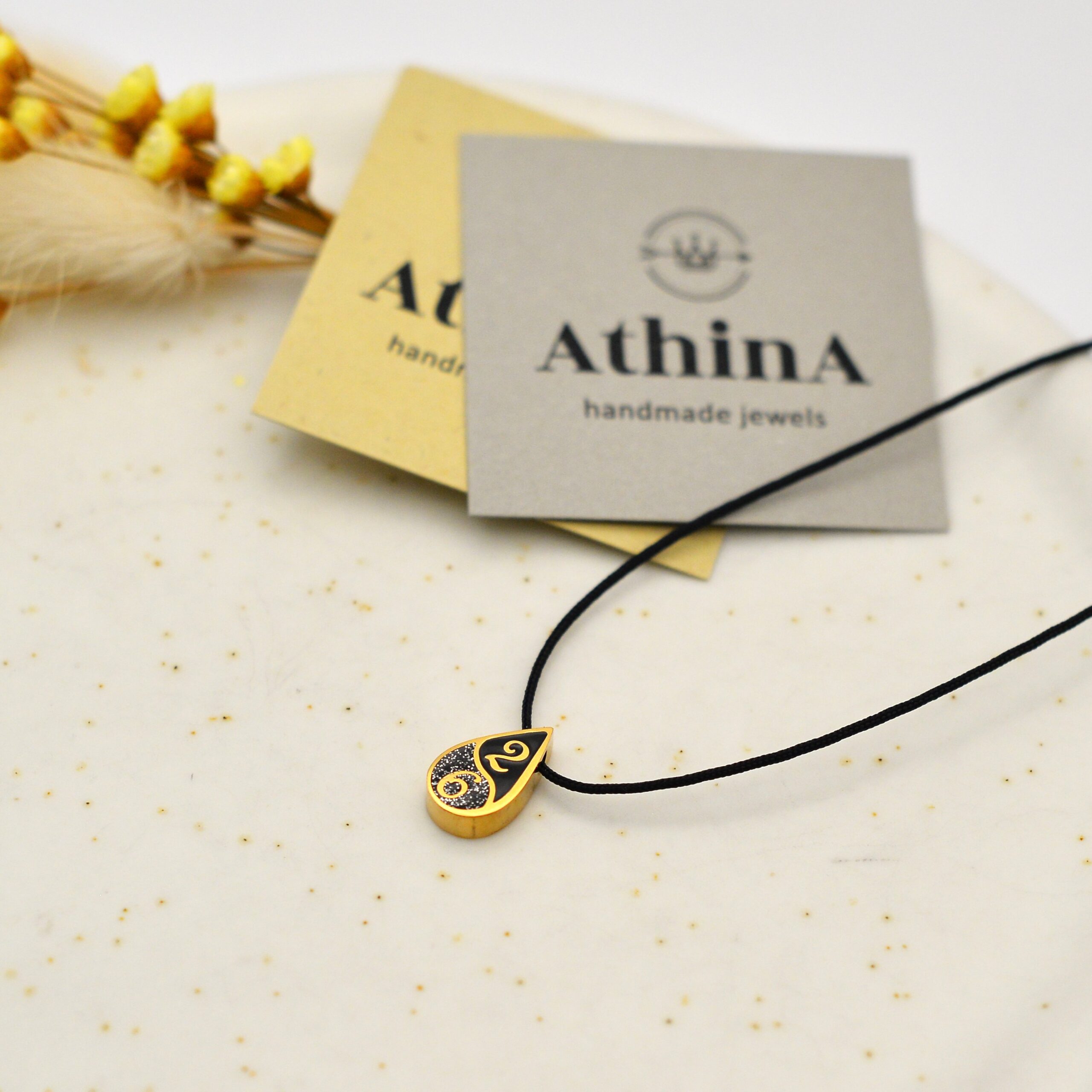 Γούρι – κολιέ από κορδόνι, ατσάλινα στοιχεία και ατσάλινο στοιχείο 2026 με σμάλτο και glitter