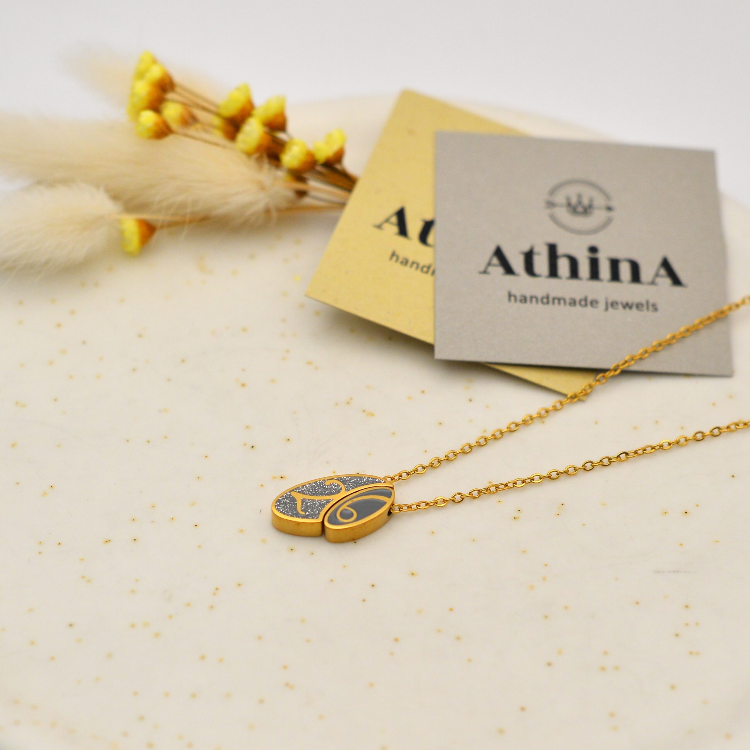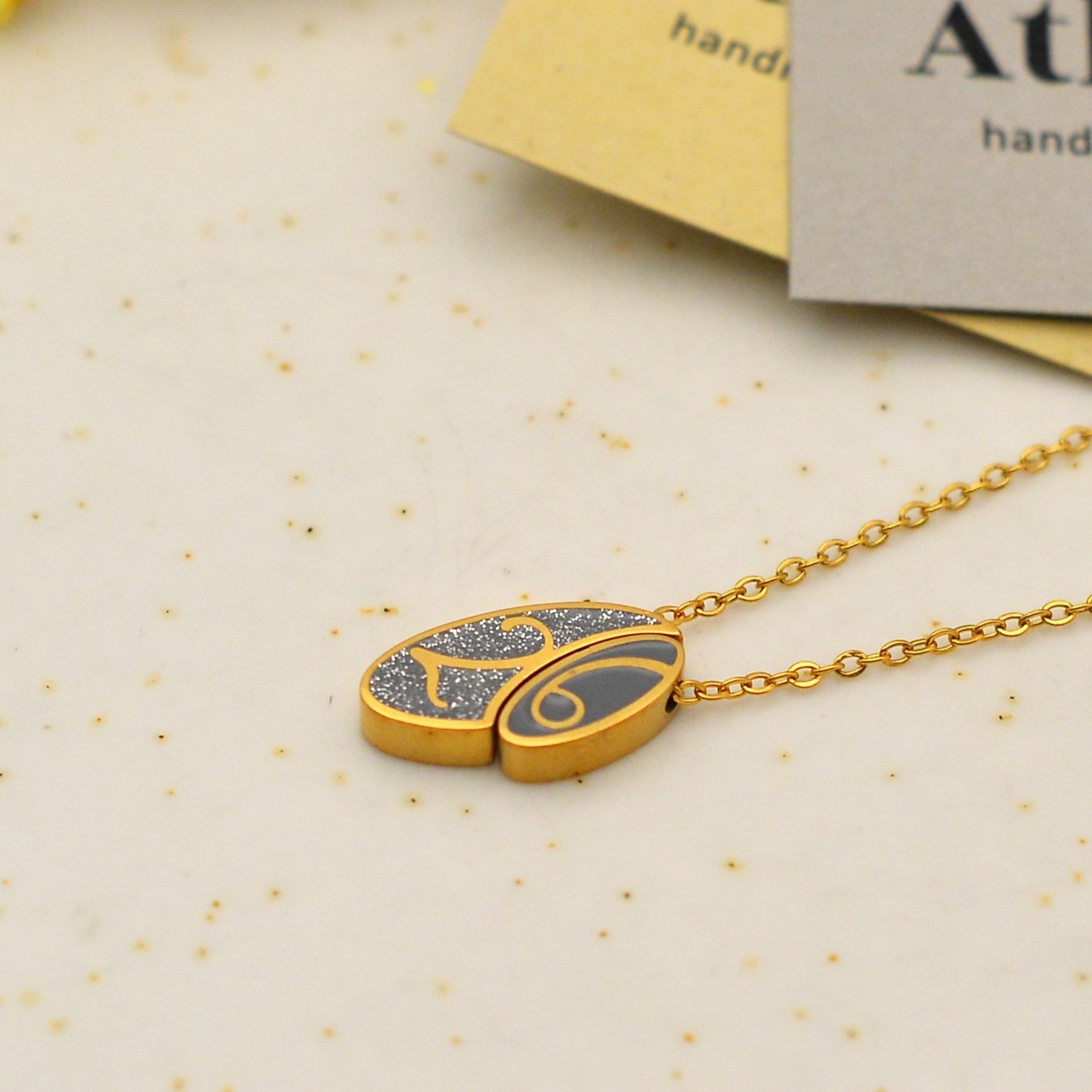 Γούρι – κολιέ από ατσάλινη αλυσίδα και ατσάλινο στοιχείο 2026 με σμάλτο και glitter