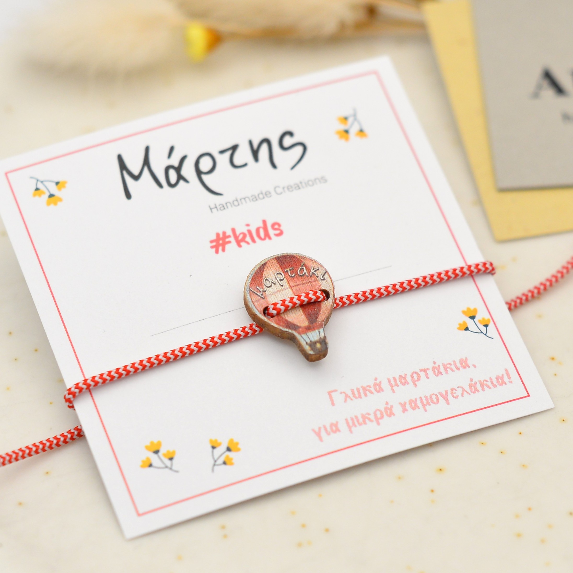 Παιδικό μαρτάκι από κορδόνι σατέν δίχρωμο πλεκτό, κορδόνι νάυλον και ξύλινο στοιχείο