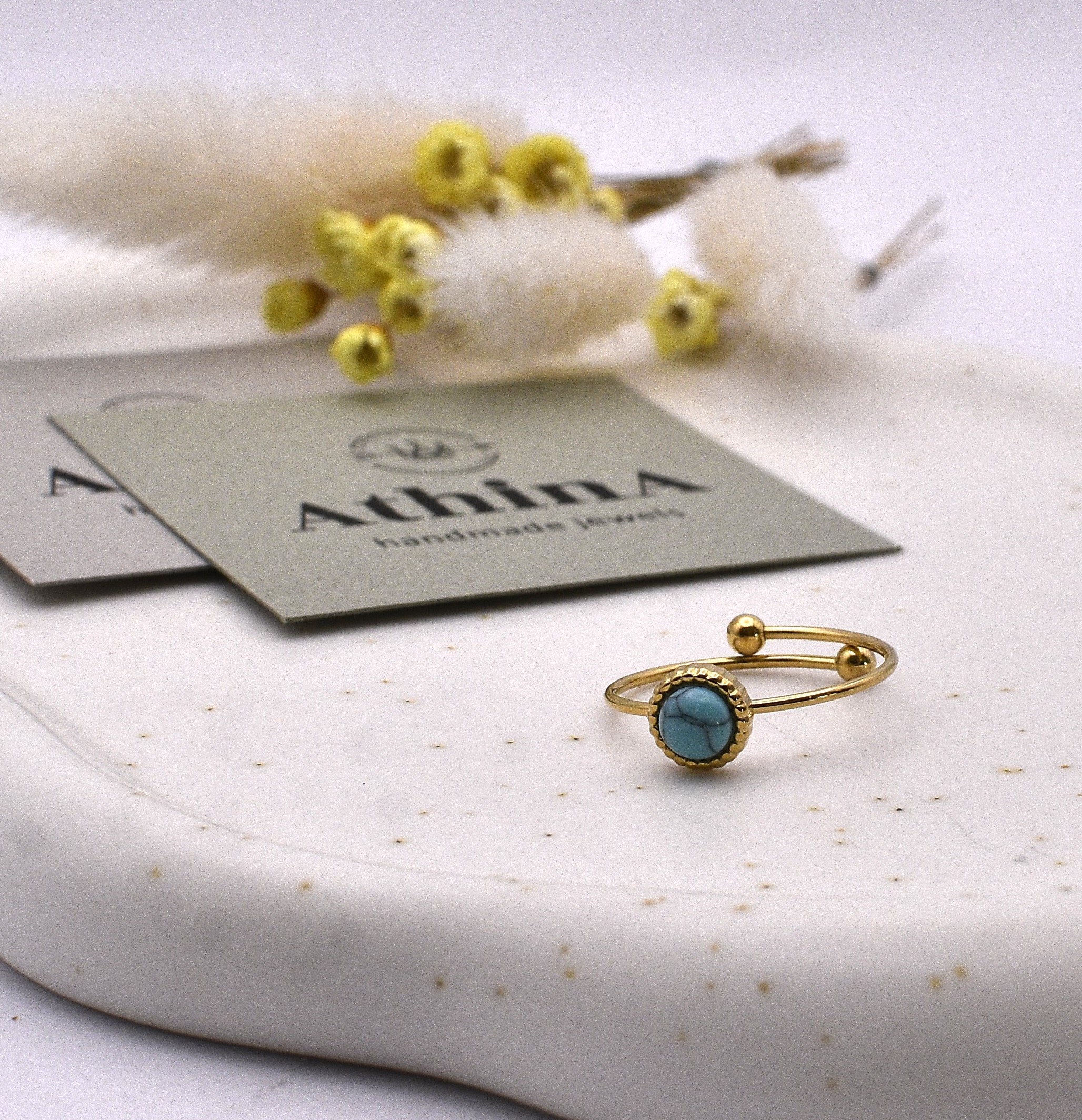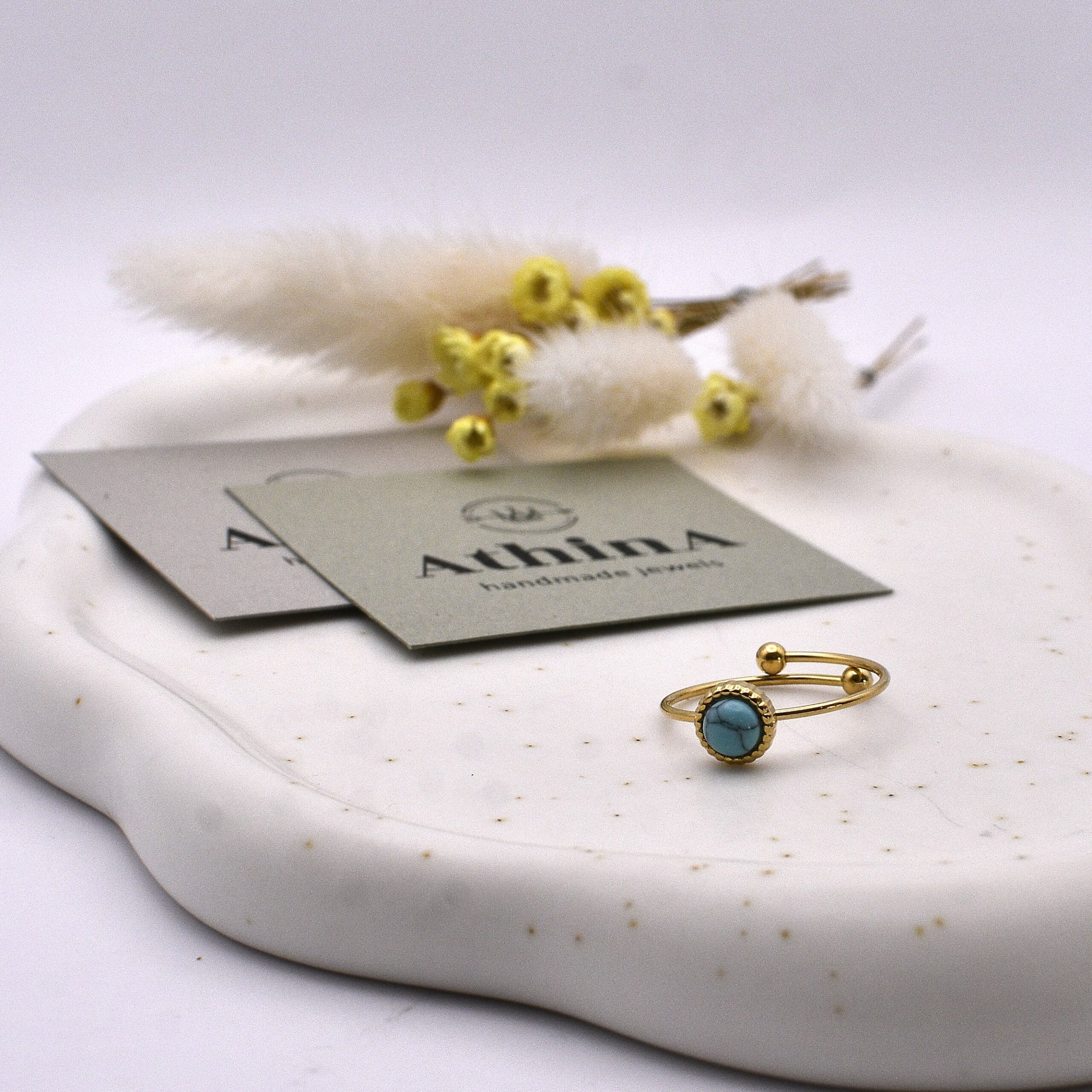 Ατσάλινο δαχτυλίδι με ημιπολύτιμο λίθο χαολίτη