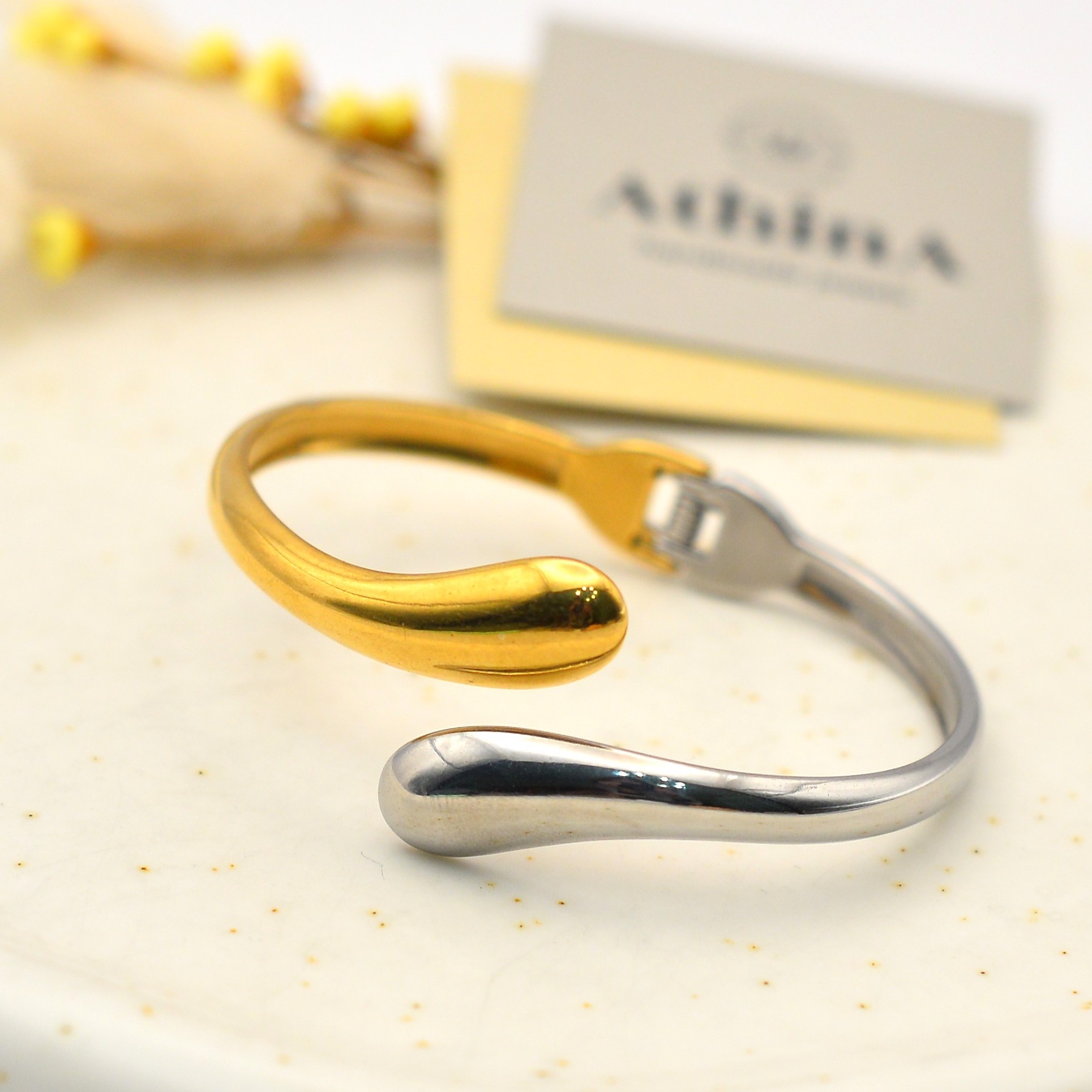 Ατσάλινο βραχιόλι χειροπέδα δίχρωμη