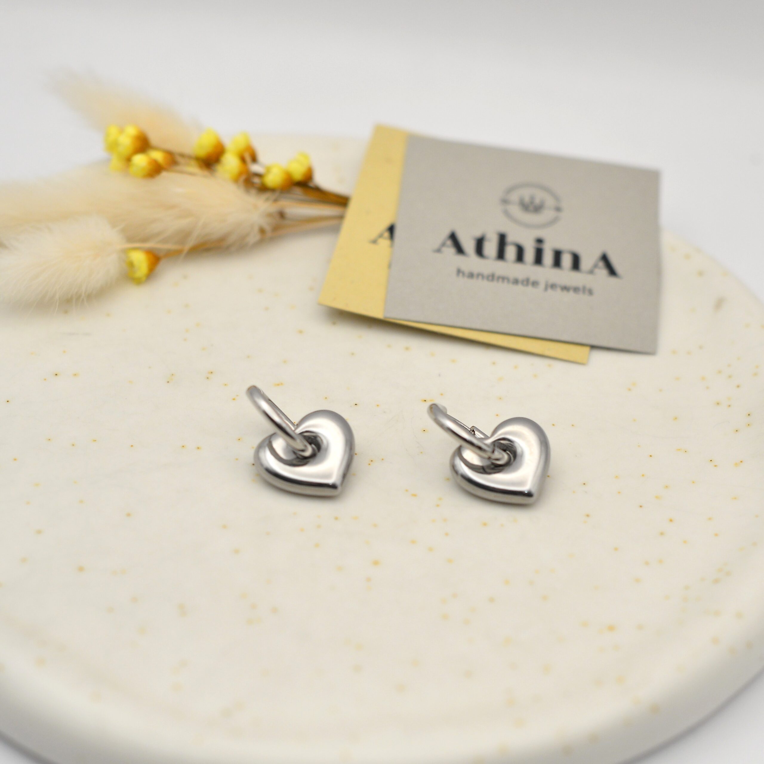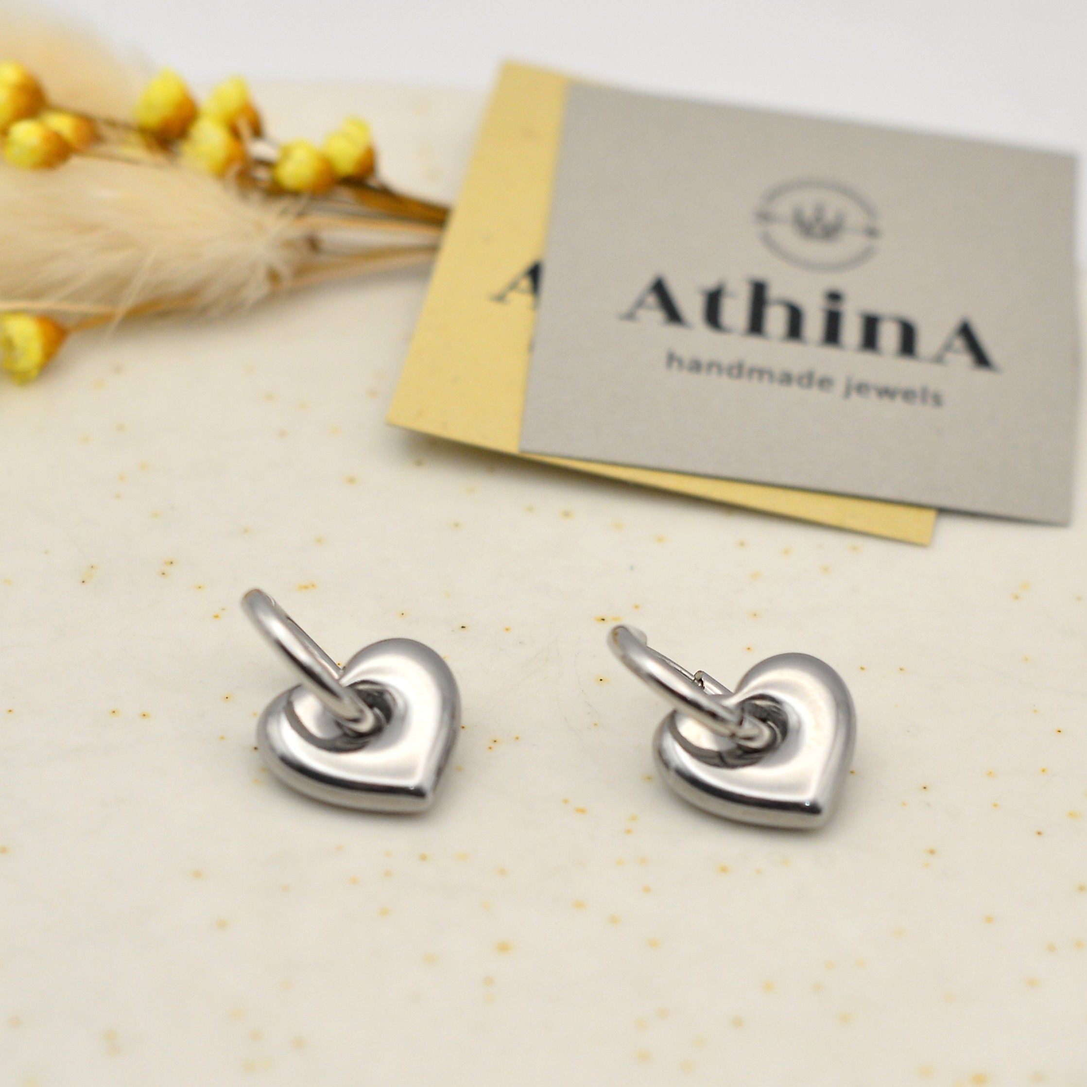 Ατσάλινα σκουλαρίκια κρίκοι με bold καρδιά