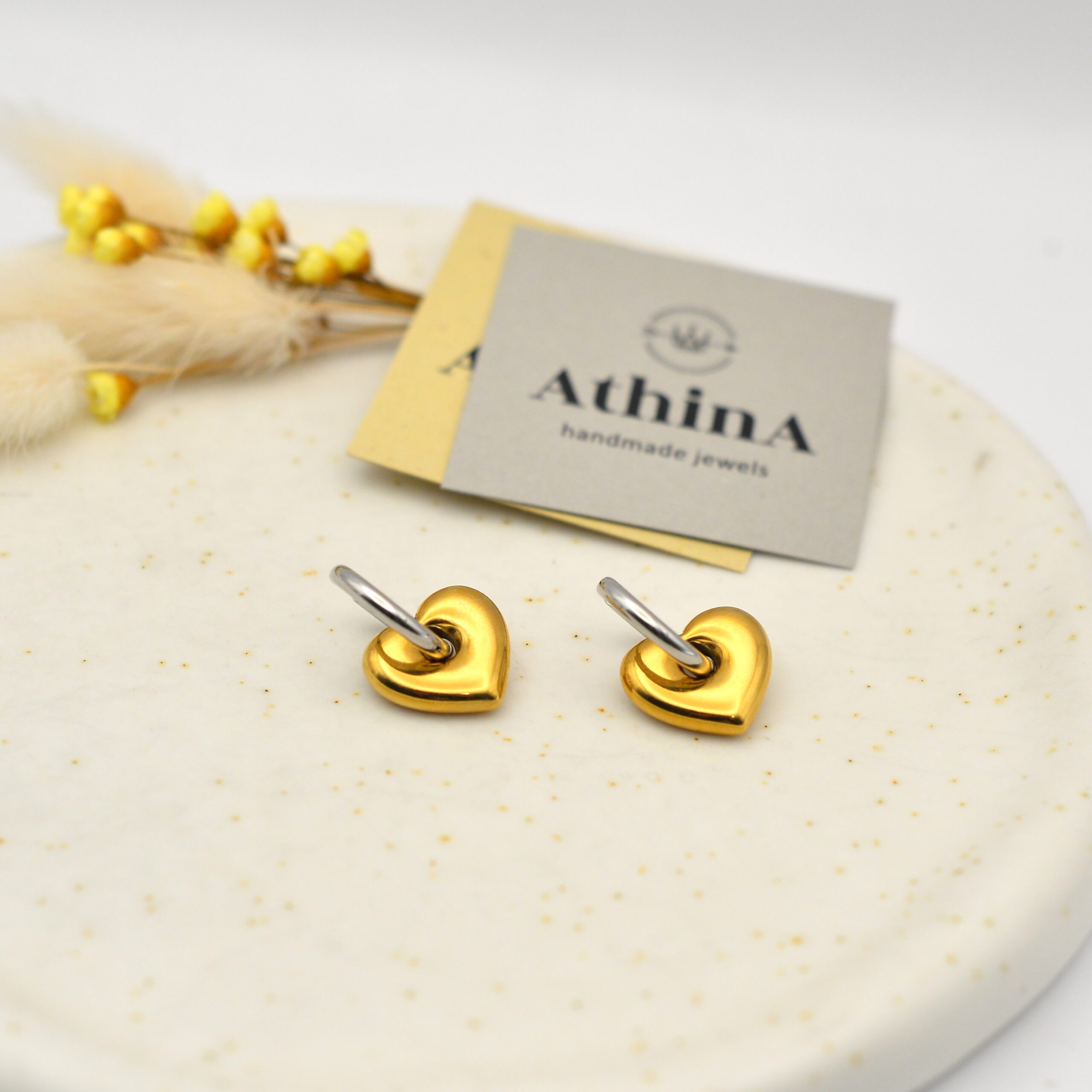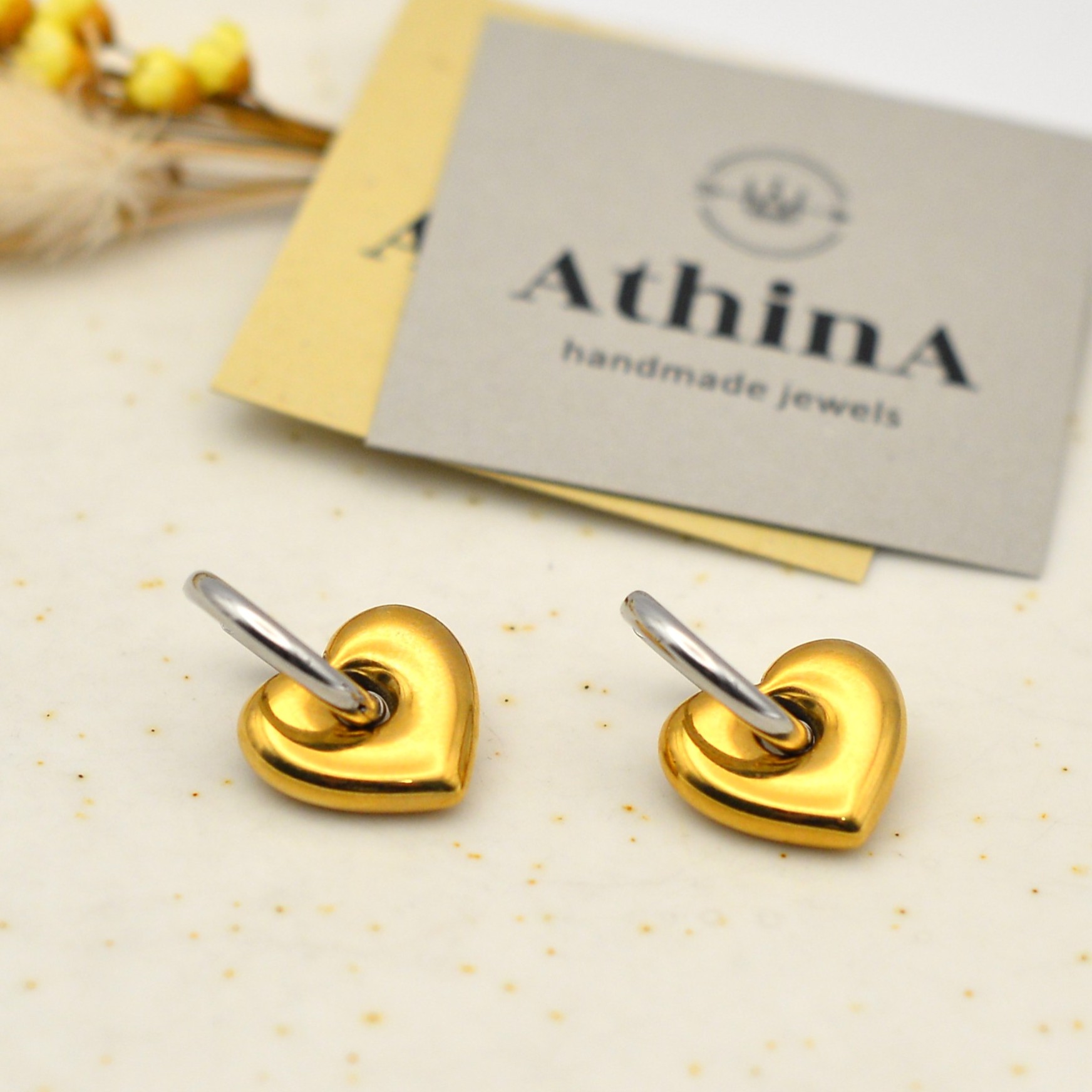 Ατσάλινα σκουλαρίκια κρίκοι με bold καρδιά